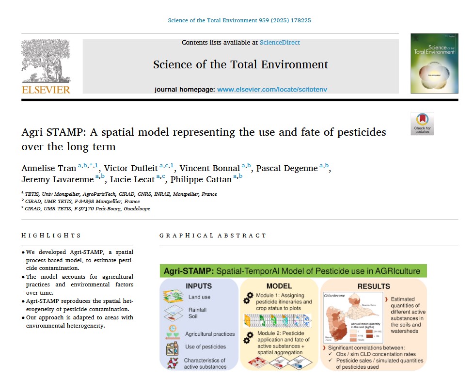 Inscrit dans les activités de l’unité TETIS autour de la modélisation des pressions pesticides, ce stage est coencadré par Jérémy Lavarenne, au Cirad, et Lionel Benoit, à l’INRAE. Il doit permettre de produire un jeu de données FAIR, des cartes de référence et de premiers résultats scientifiques, dans une perspective à la fois méthodologique et opérationnelle.